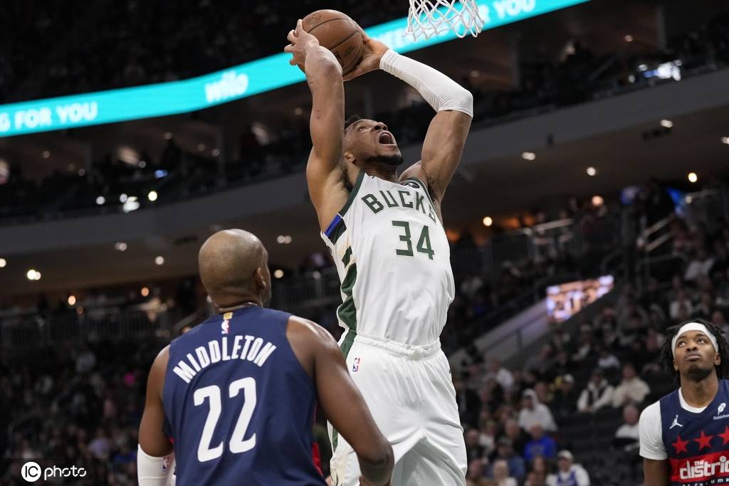 雄鹿队首发:扬尼斯-阿德托昆博、凯文-波特、莱恩-罗林斯、迈尔斯-特纳、AJ-格林